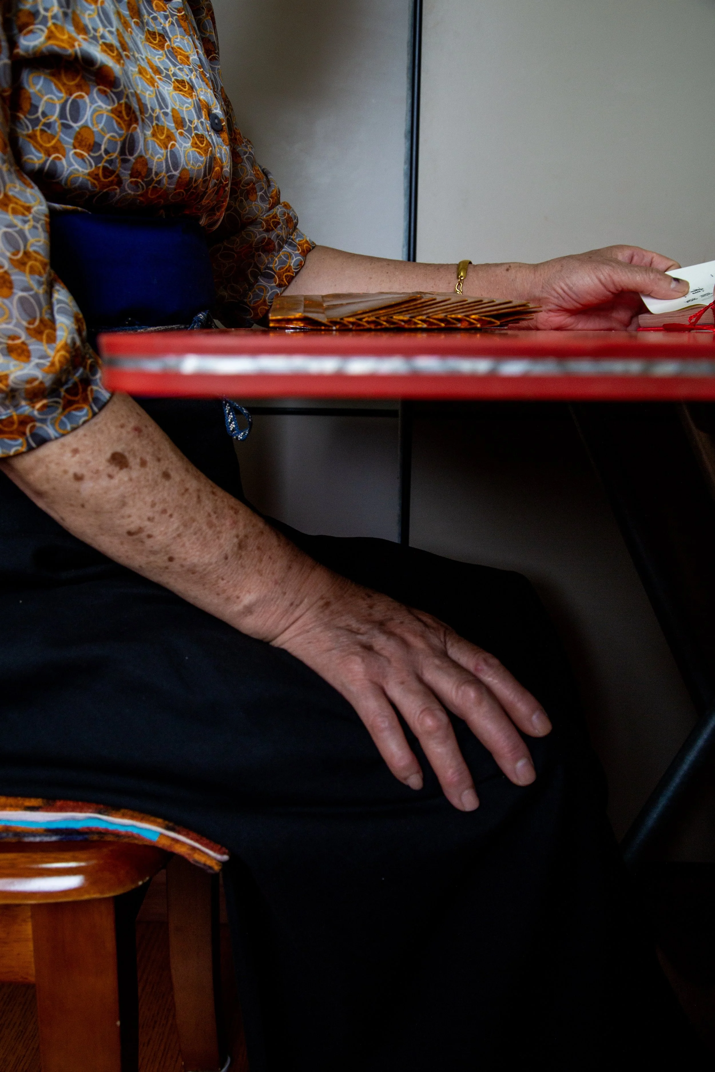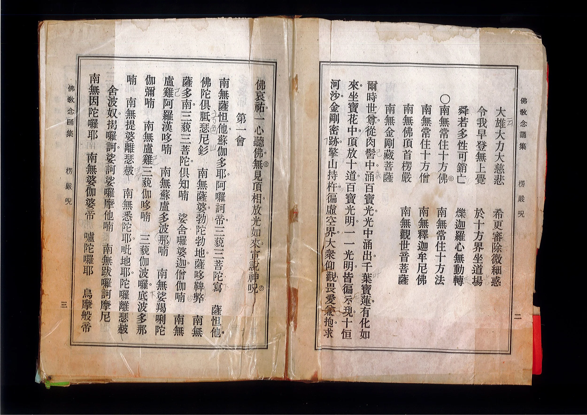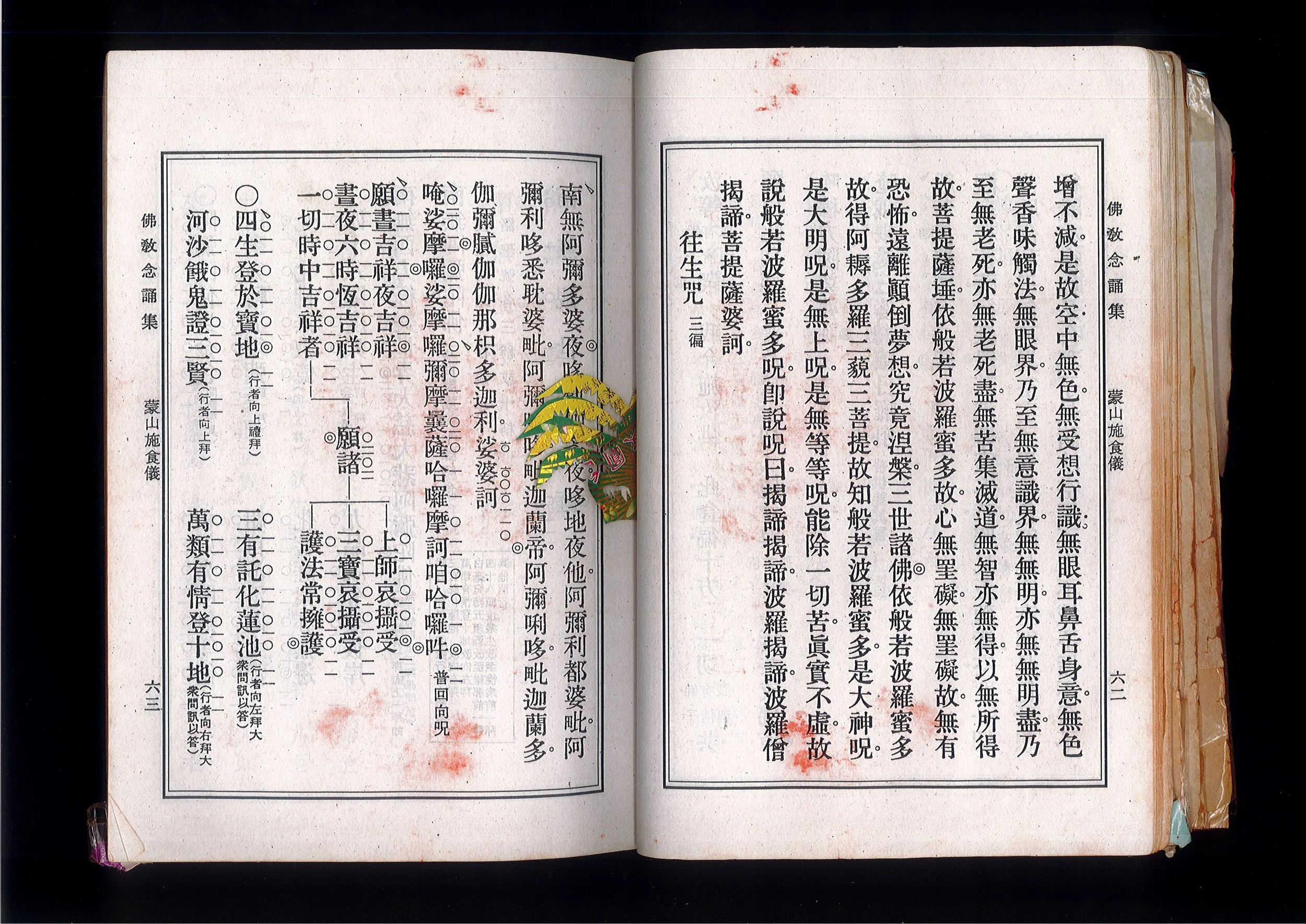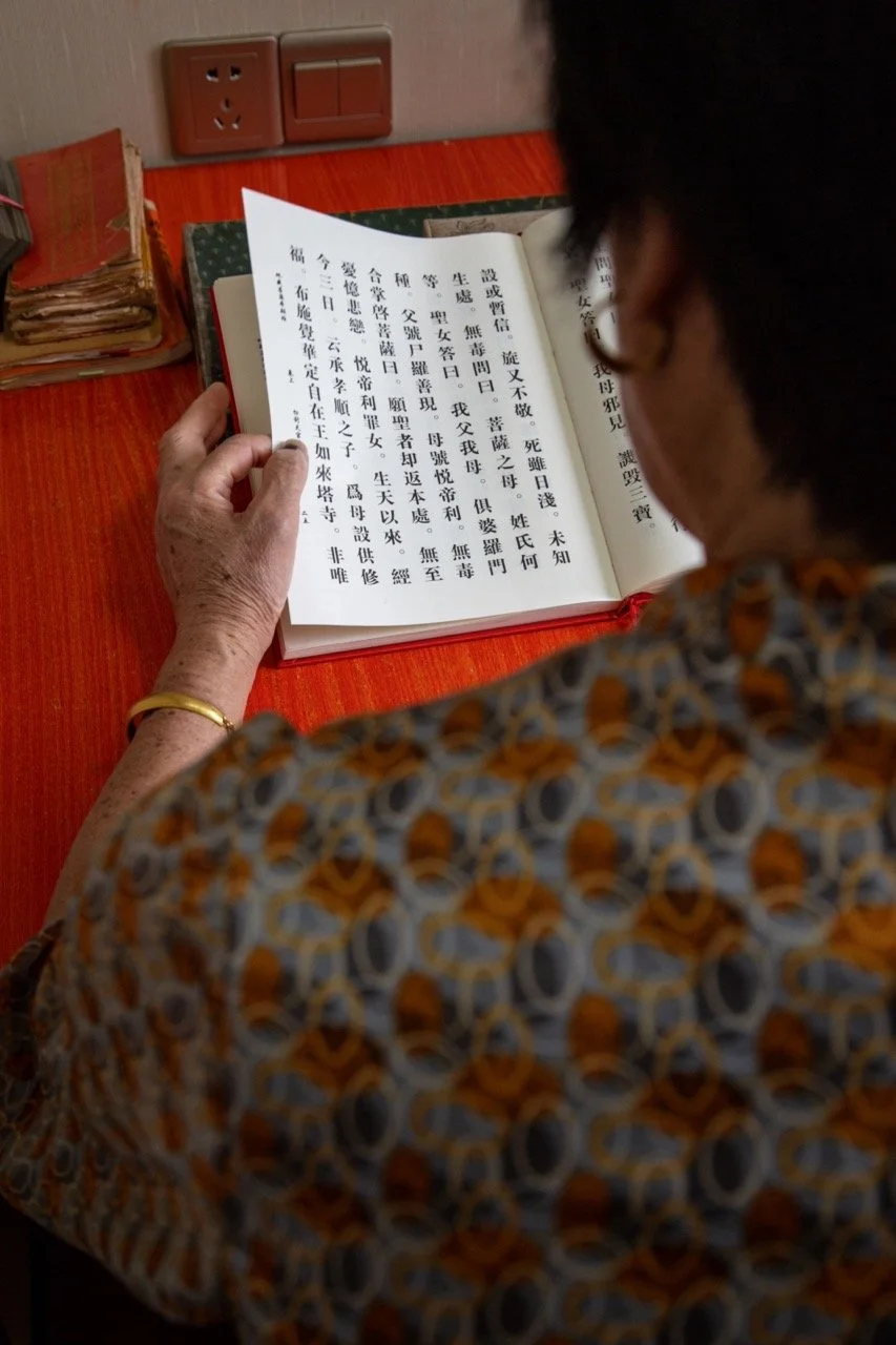 Featuring the large-scale embroidered Heart Sutra with the pronunciation of some words I did for her as a child, a video of me chanting the Heart Sutra, and a photo wall showcasing her daily life combined with scanned scriptures, along with the original sewing machine and scriptures, this piece connects spirituality and women’s labor while reclaiming undervalued domestic practices.