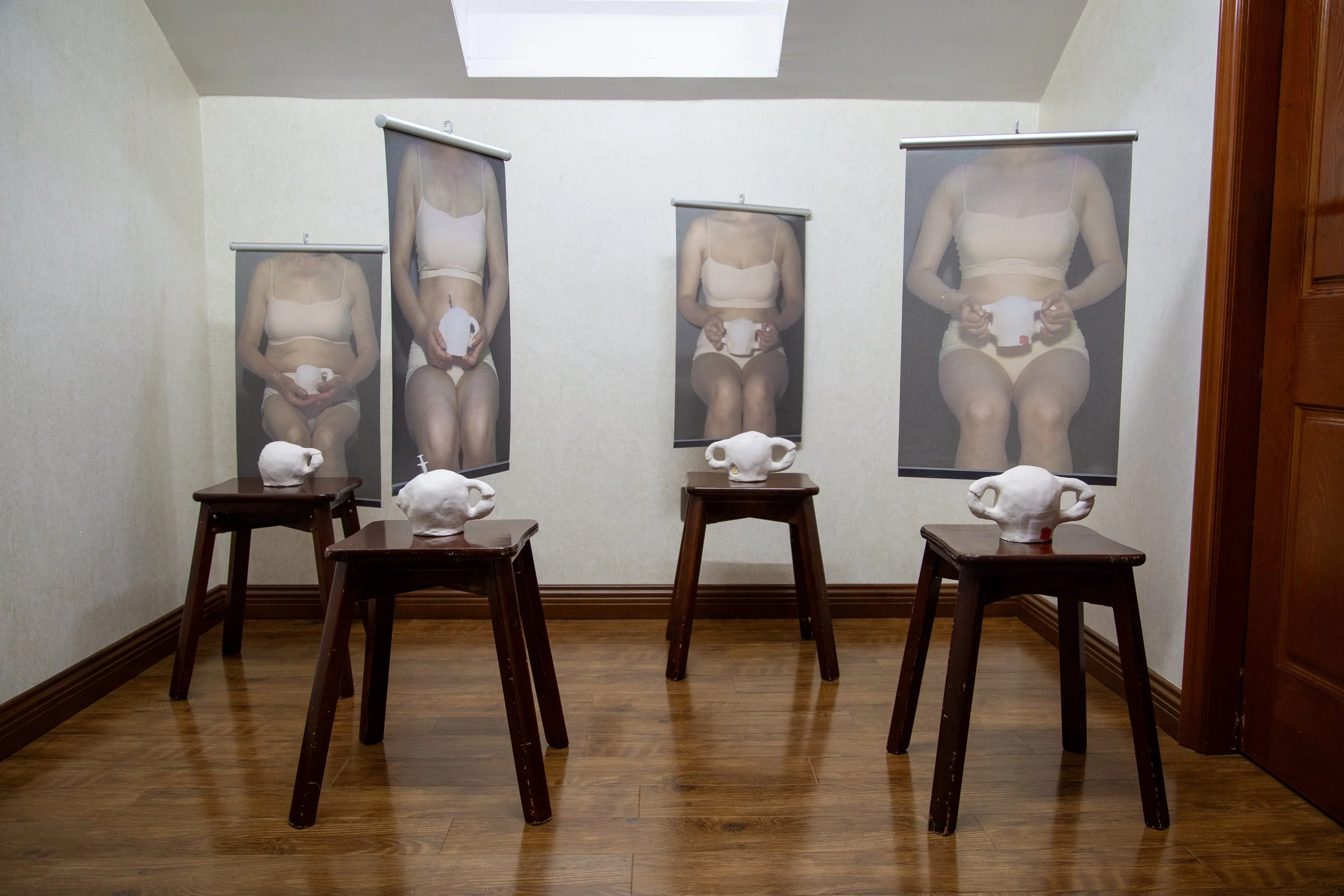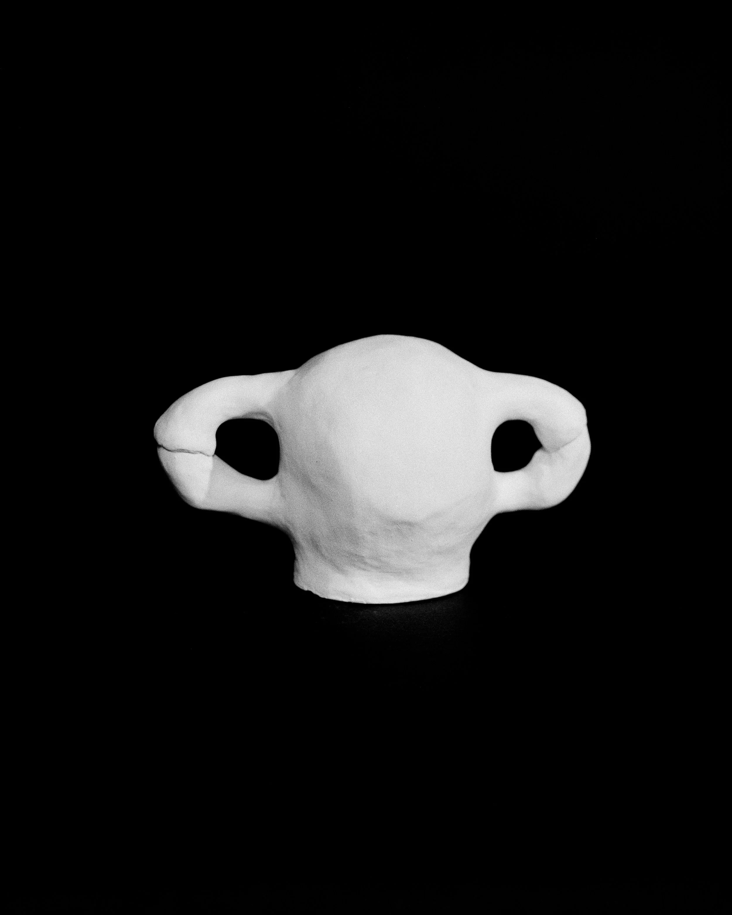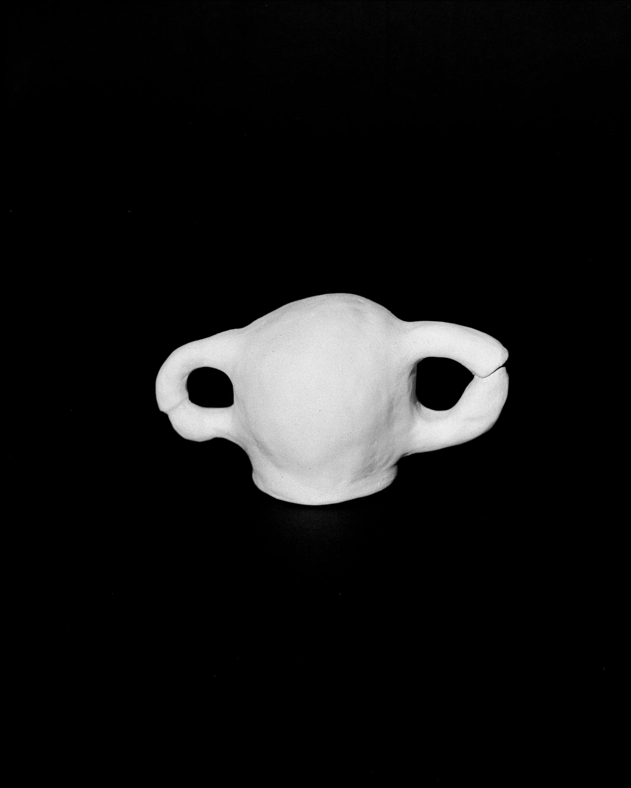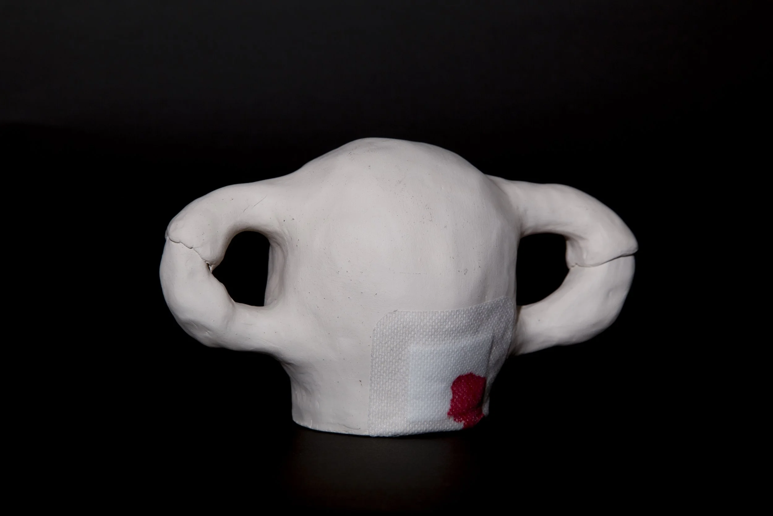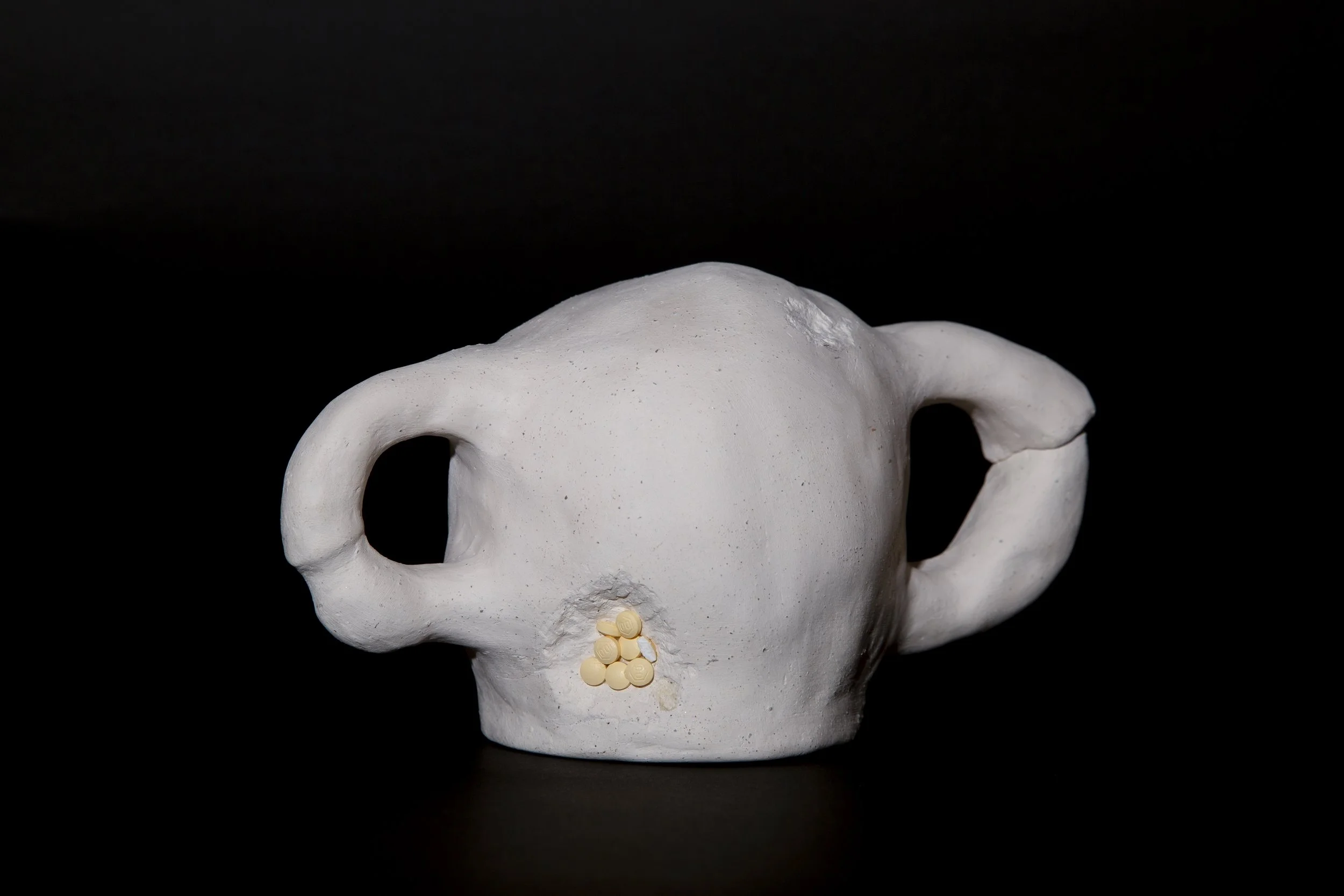 This project features ceramic sculptures of uteruses representing various contraceptive methods—birth control pills, IUDs, injections, and patches, paired with photographs of women from different generations holding them, emphasizing the intergenerational impact of contraception.