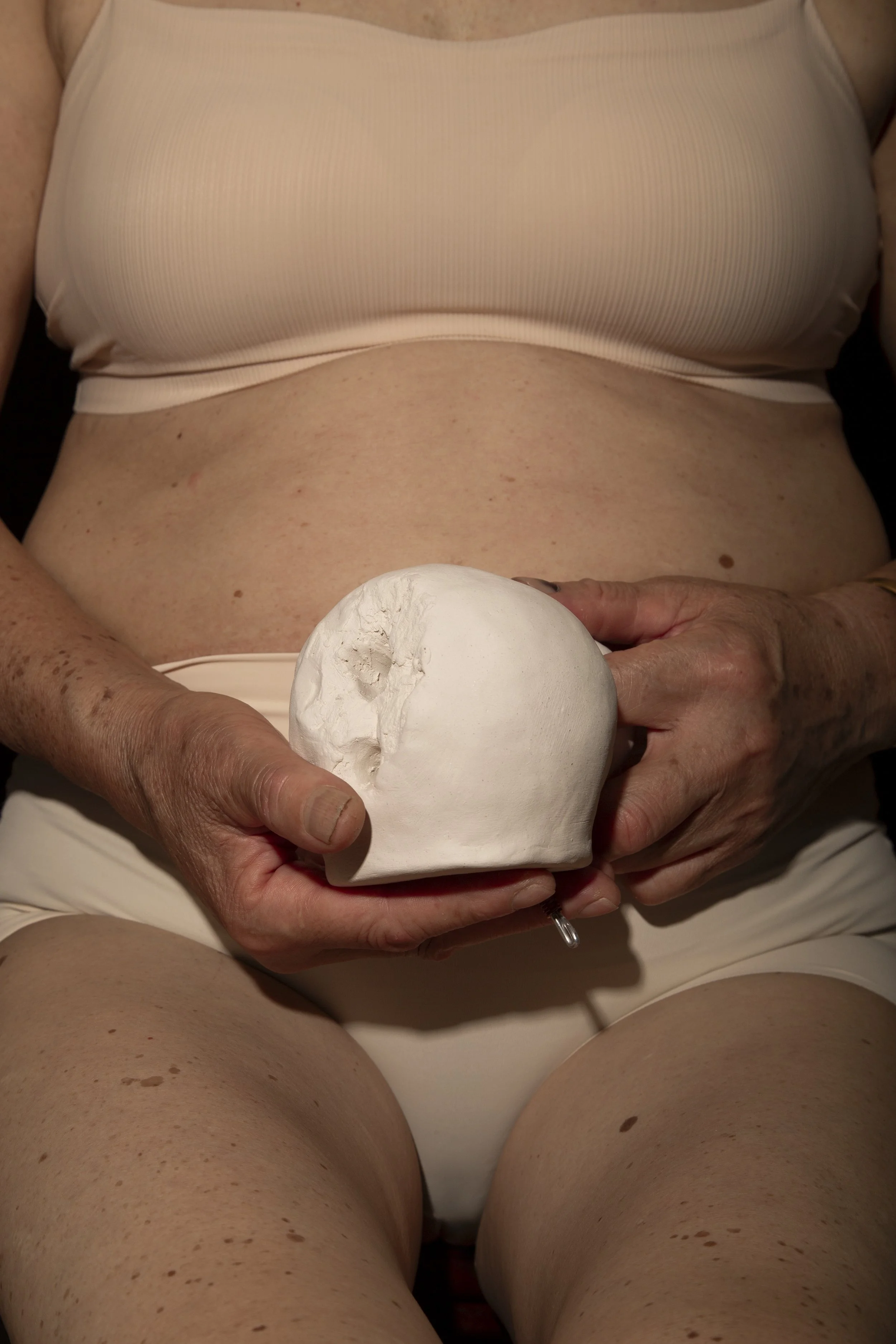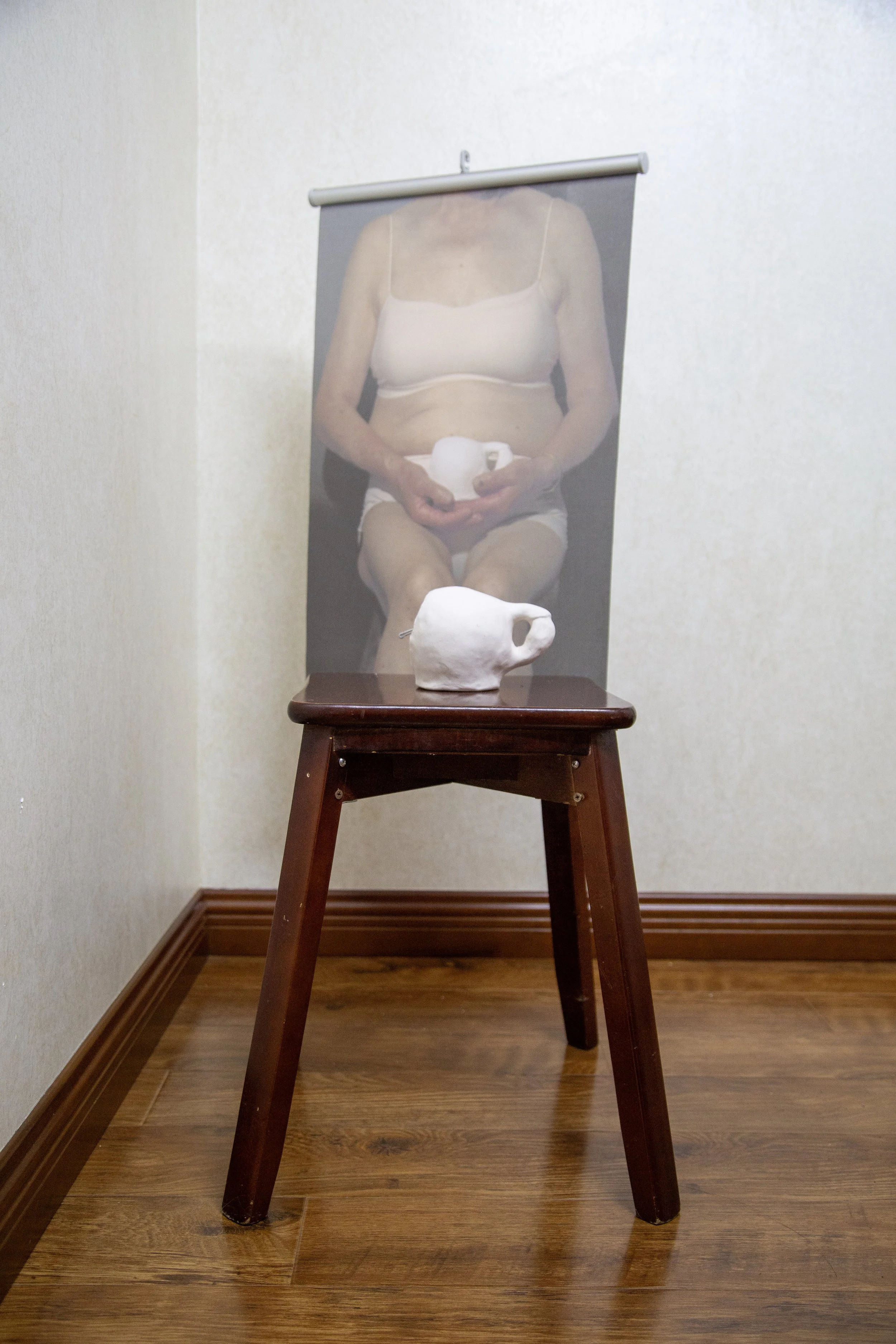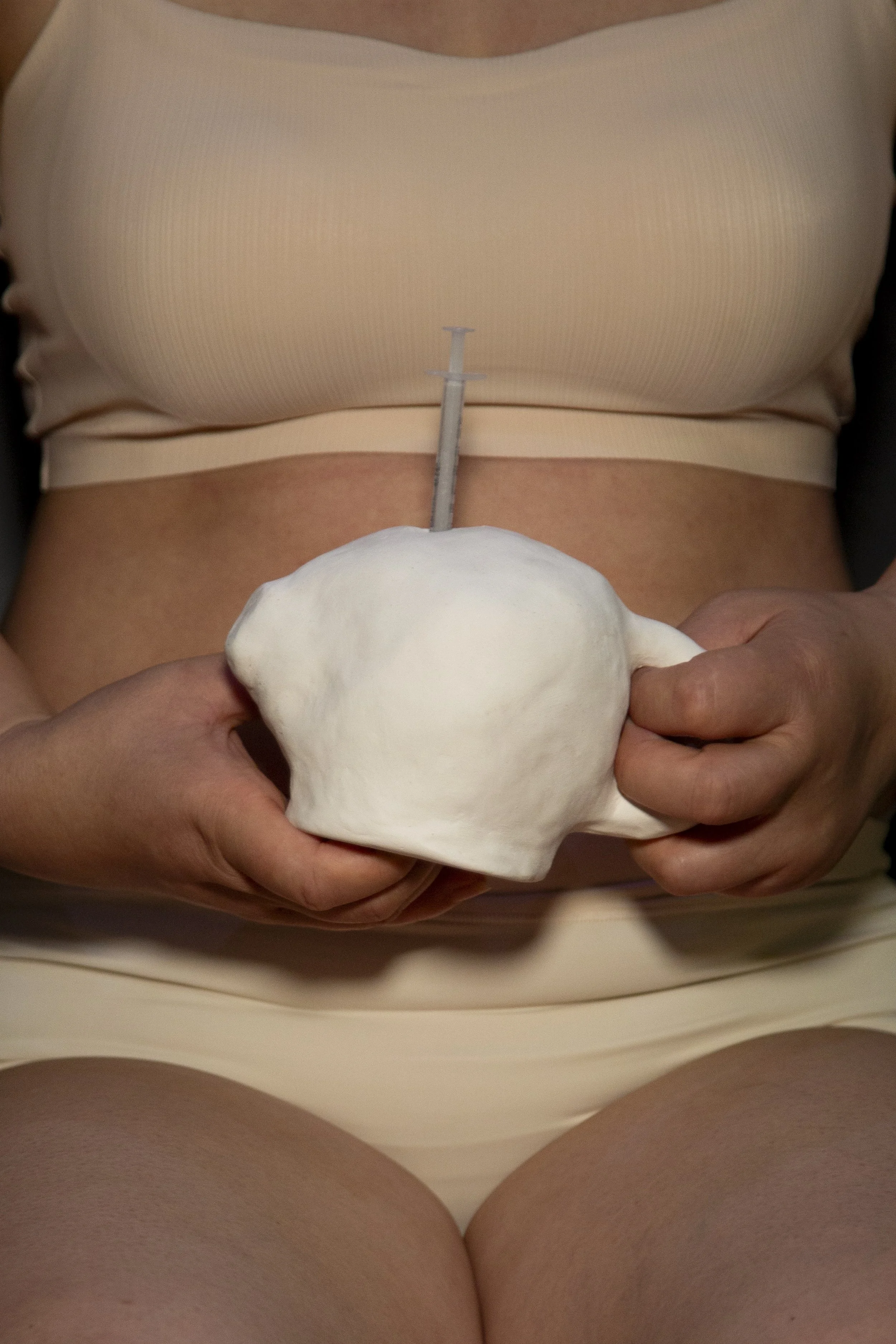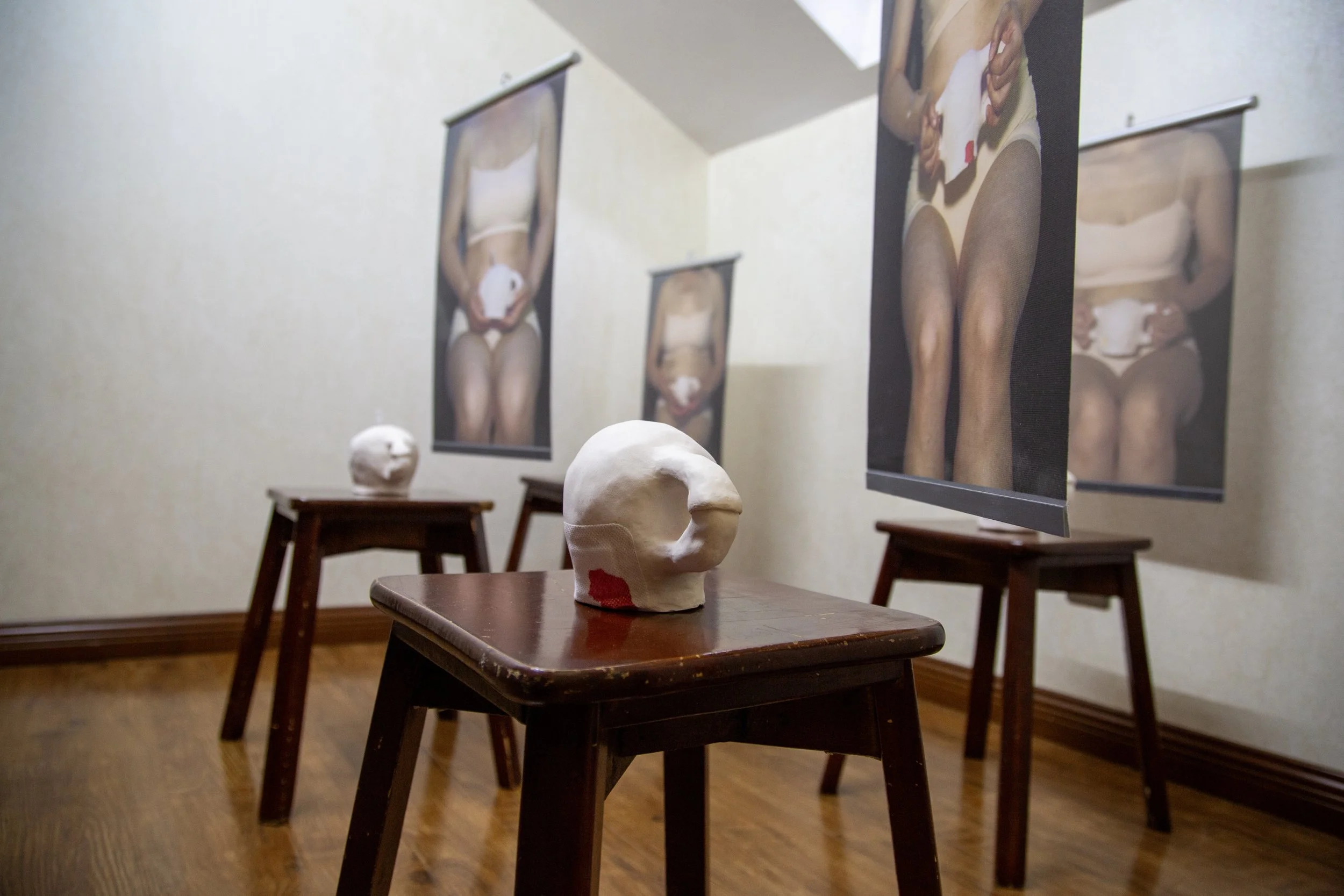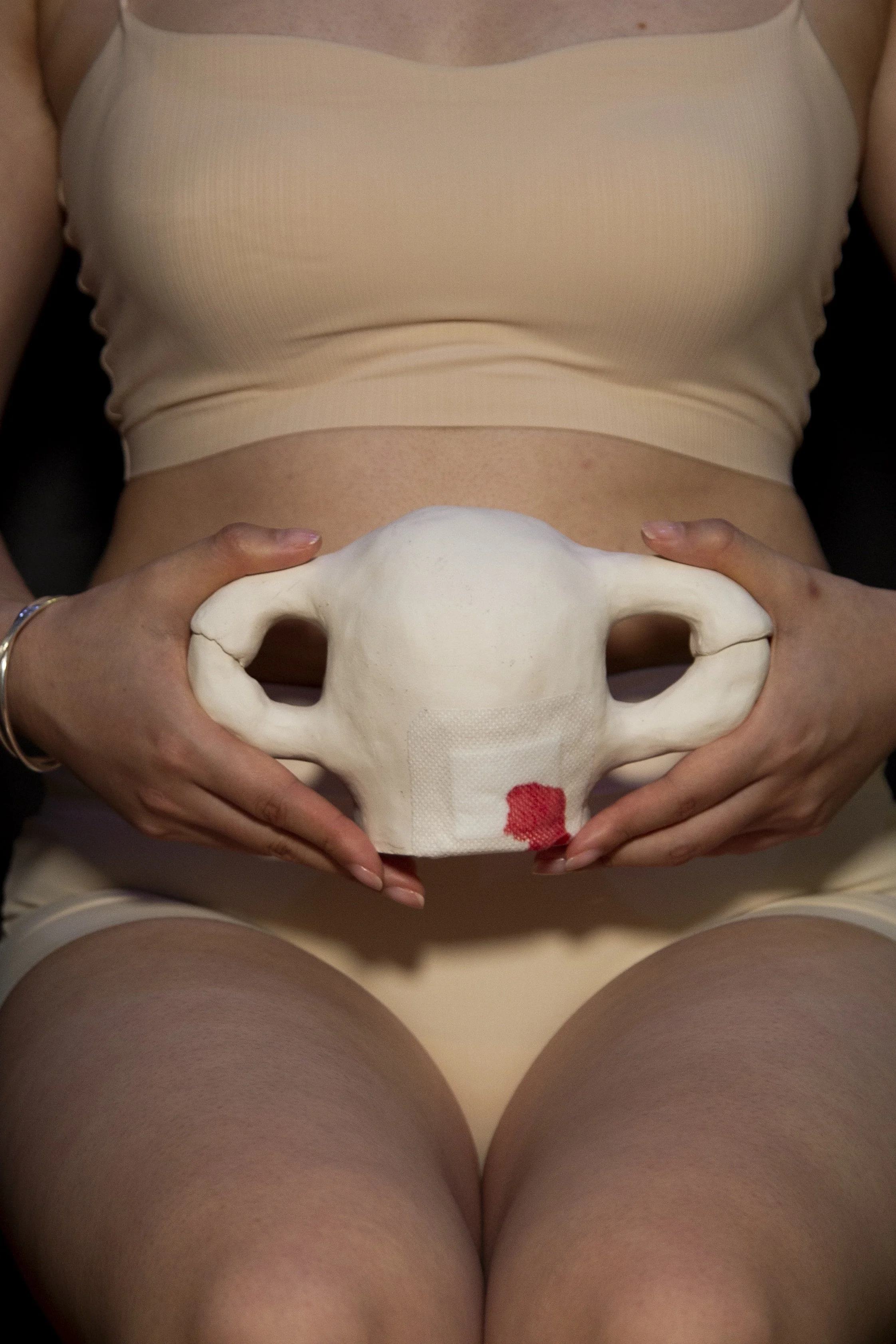 This project features ceramic sculptures of uteruses representing various contraceptive methods—birth control pills, IUDs, injections, and patches, paired with photographs of women from different generations holding them, emphasizing the intergenerational impact of contraception.